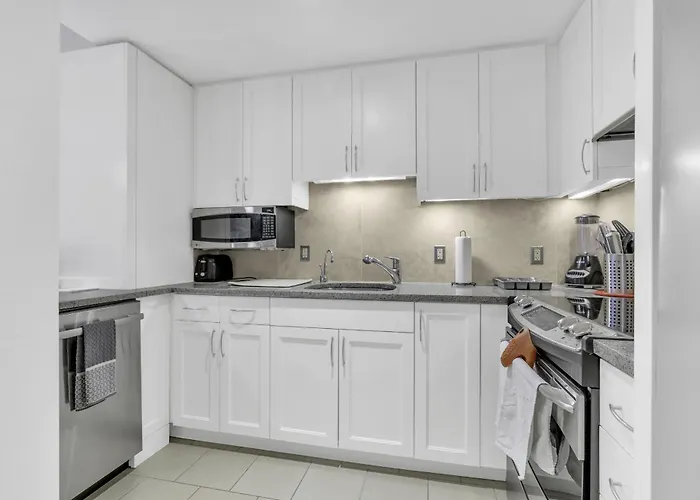 Das 1Br Furnished Apartment At Penn Quarter Apts bietet eine komplette Küche an, die mit einem Herd und einem Geschirrspüler ausgestattet ist. Die nächstgelegene Bushaltestelle 7th Street NW & H Street Northwest befindet sich in unmittelbarer Nähe zum Apartment. Darüber hinaus bietet diese Apartments den Gästen Zugang zum Fitnesscenter, was den Aufenthalt noch angenehmer macht.